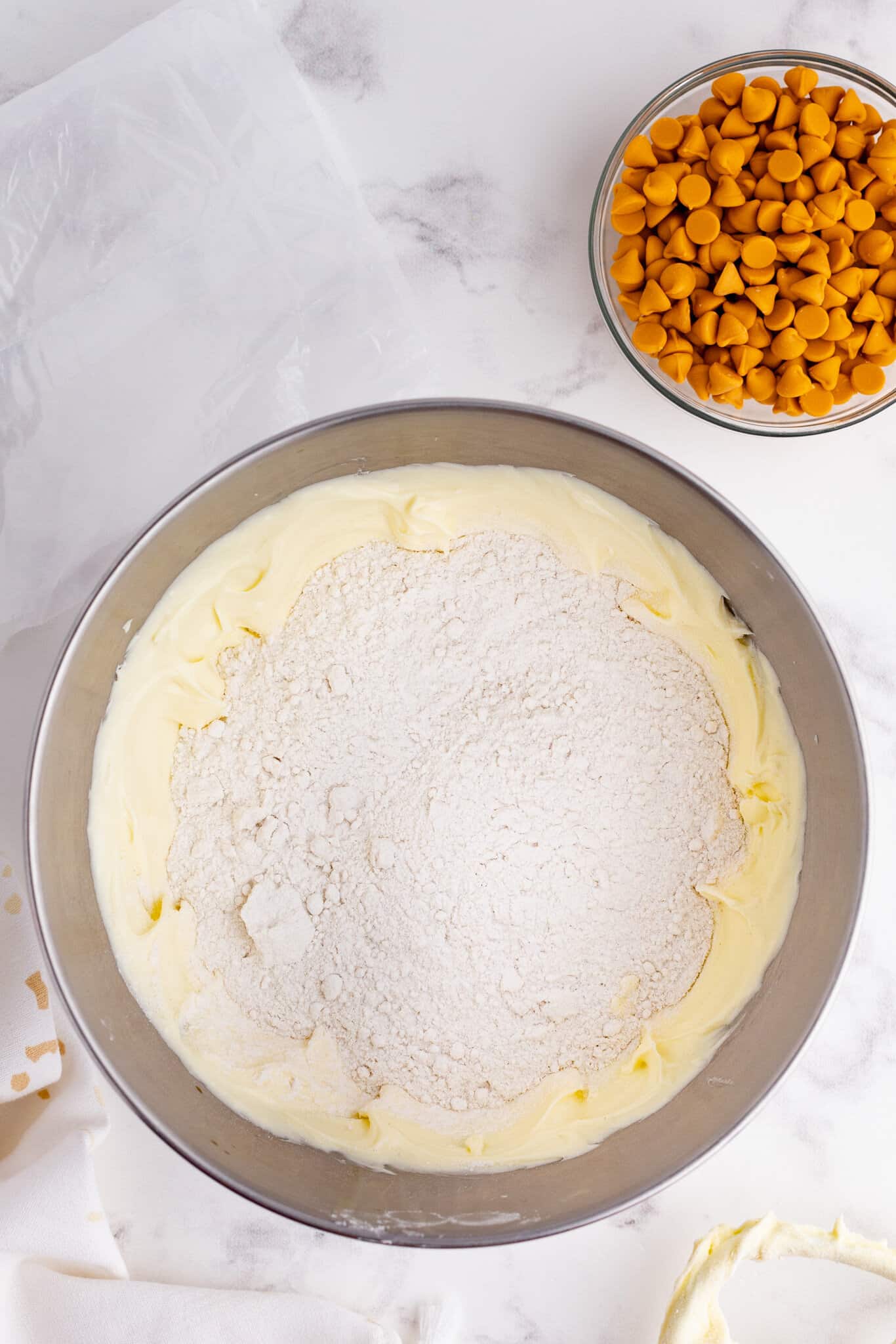 I added some butterscotch chips to the bowl.