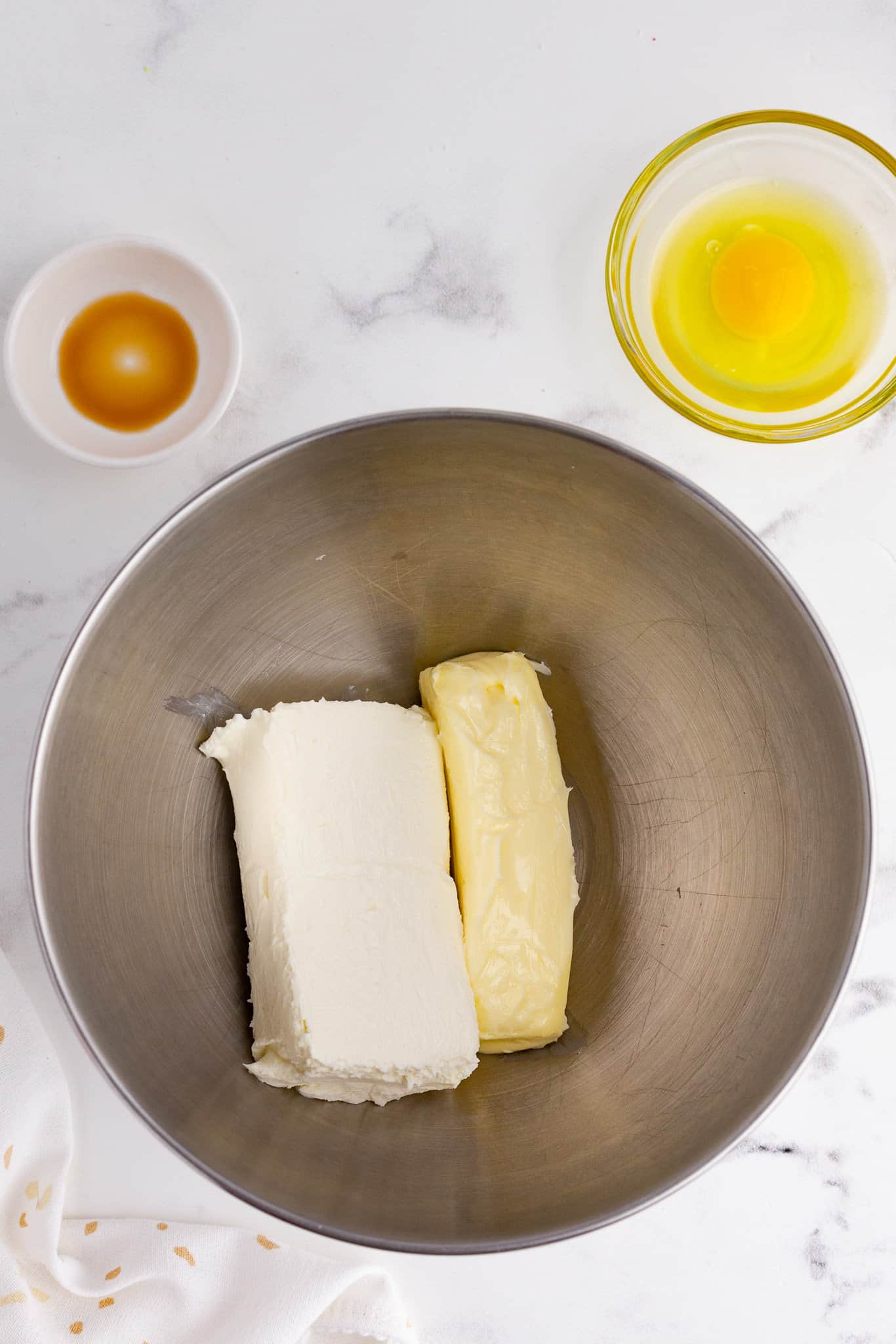 - Add in vanilla extract and egg and combine.