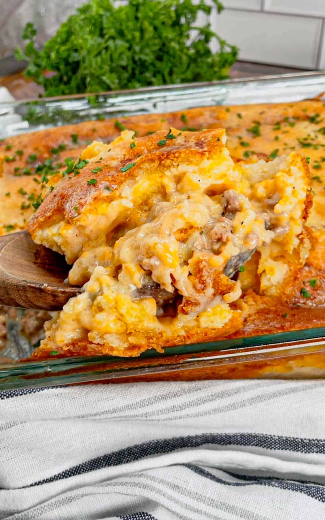 - Kid-approved – A cheesy, meaty, biscuit-topped casserole that even picky eaters will devour!