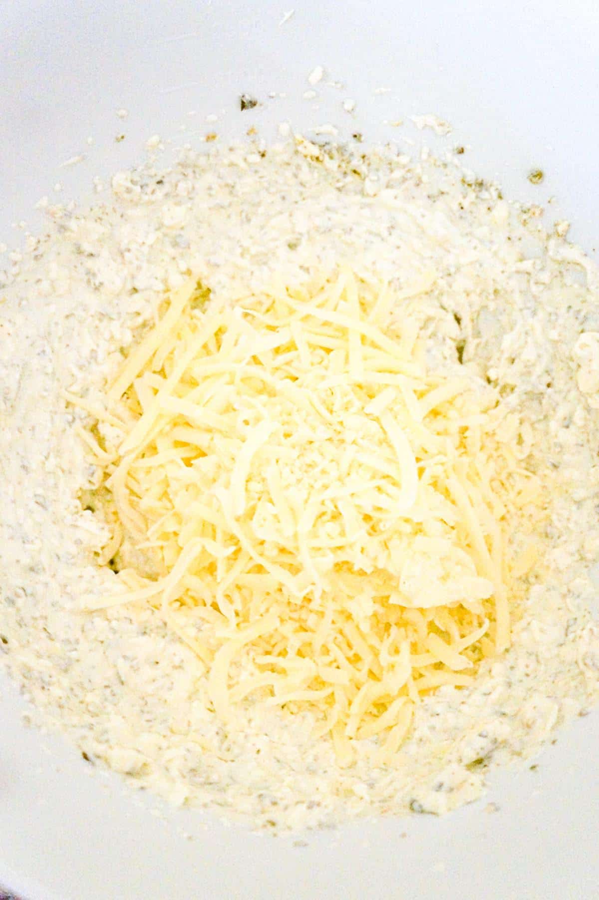 I stirred the shredded cheese into the sour cream and cream cheese mixture.