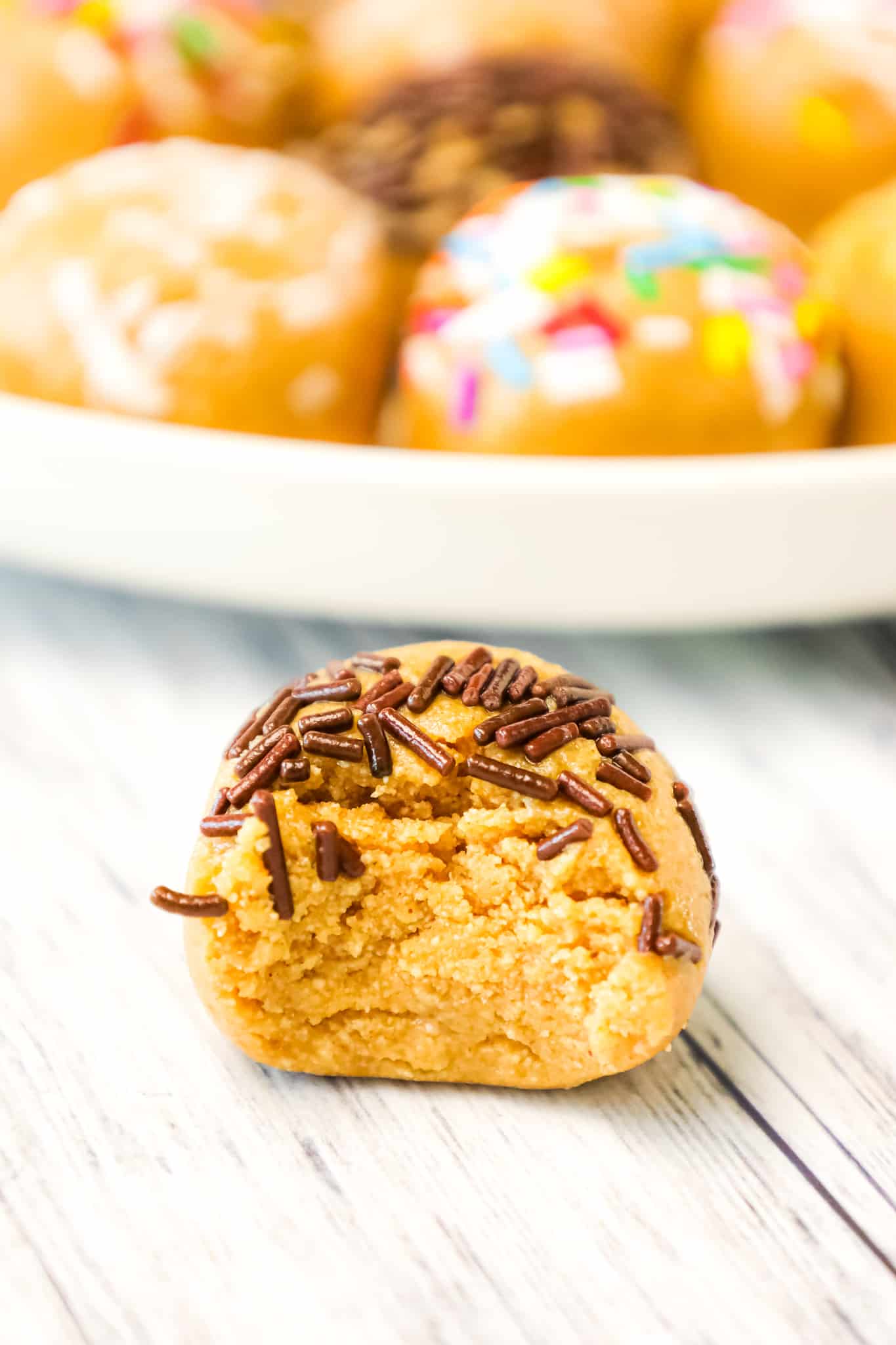 These peanut butter balls can be rolled in your favourite toppings, like shredded coconut, sprinkles or crushed corn flakes.