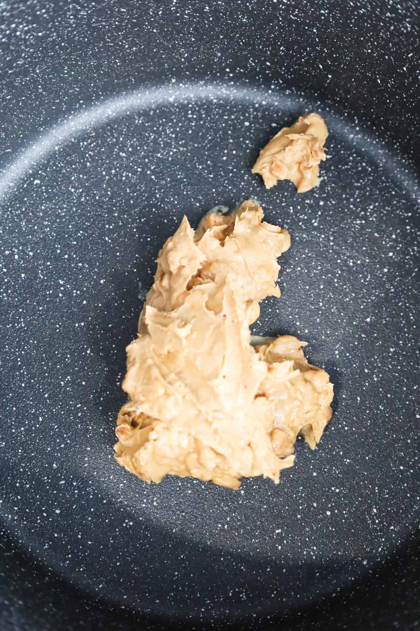 - Dump the peanut butter into a pot over medium heat.