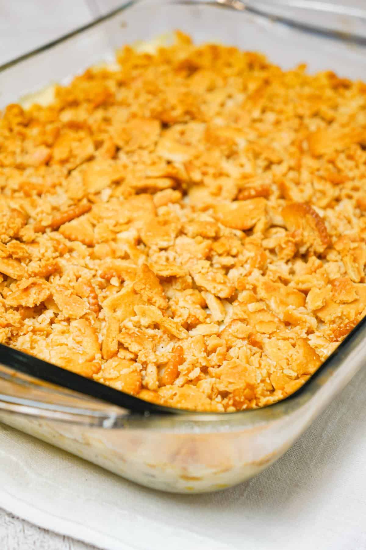 The Ritz crackers on top add great texture and flavour to the dish.
