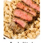 - Scoop the pasta onto serving plates and top with steak slices.